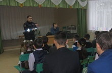 В школе была проведена встреча. Были представители из района. Они провели с учащимися инструктаж. Сотрудник ГИБДД ознакомил учащихся правилами поведения на дороге, в автобусе.