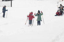 Учащиеся во время зимних каникул весело и спользой провели время катались на санках и на лыжах в школьной спортивной площадке.