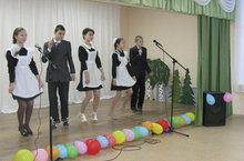 В младшем звене ведущими были семиклассники. Они приготовили свою новогоднюю программу с инсценировками сказок на новый лад. Проводились разнообразные интересные конкурсы со зрителями.