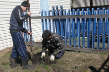 Гараева С.Р. провела беседу на тему "« Добрая книга, доброе дело, доброе имя". До занятий ребятам было предложено придумать по одному доброму делу от класса и воплотить это дело в жизнь. После занятий учащиеся 6-7 классов посадили кустарники.