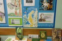 Без Габдулла Тукай иҗатына багышланган күргәзмә оештырдык.Мы организовали выставку,посвященную к творчеству Габдуллы Тукая.