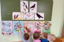 В нашем саду эта неделя была посвящена Дню птиц, который отмечается 1 апреля. Воспитанники первый младшей группы провели плодотворную работу. Были проведены беседы на тему "Откуда летят птицы?" , " Где живут птицы?" и "Пернатые помощники" . Воспитателями группы была организована выставка "Международный день птиц" и изготовлен летбук "Птицы". Для малышей были подобраны мультфильмы и развивающие видео про птиц, были прослушаны аудио- записи "Голоса птиц". На музыкальных занятиях дети играли в подвижные игры "День и Ночь". Ребята и лепили птичек и делали скворечник для них. И заключительным занятием было раскрашивание фигурки птички из солёного теста. Воспитатель Курчаева Р.В.
