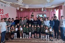 Пап, дедушек подготовительной к школе А группы с праздником 23 февраля поздравляют их детишки.