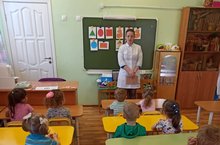 Во вторую младшую А группа пришла участковый терапевт Маврина Мария Александровна, она беседовала с детьми о прививках, они защищают людей, их бояться не нужно.