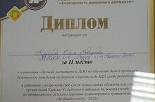 Воспитатель нашего детского сада Ольга Будилова заняла 2 место в конкурсе "Лучший воспитатель ДОО по обучению детей ПДД на дорогах и пропоганде БДД среди родителей". Поздравляем Вас, Ольга Евгеньевна, желаем дальнейших побед!