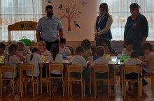 В средней А группе детского сада проведено занятие по изучению ПДД с участием ведущего специалиста отдела профилактики сектора в Верхнеуслонском районе ТУ в г.Казани ГБУ БДД Миннуллиной К.В., представителя полиции и методиста по ДО МКУ "Управления образования" Мингазеевой Г.Р.. Воспитатель группы Ольга Будилова закрепила знания по ПДД, показала свой вариант новой рабочей тетради по изучению ПДД с детьми.