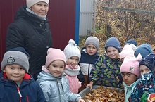 Трудовое воспитание детей. Ребята подготовительной "А" группы убрали прилегающую к своей группе территорию от сухих листьев.