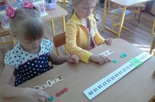 Дети, использую геометрические фигуры составляли цифры, играли в игры со счетом. У них здорово получается!