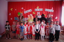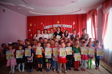 Старшие группы показывали утренник "С праздником Победы!" Дети слушали песни военных лет, читали стихи, танцевали. Муз.руководитель Ф.Зарипова рассказала детям историю появления георгиевской ленты.