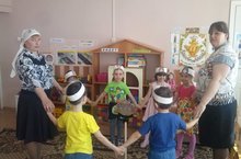 Дети средней группы Б (воспитатель О.Будилова) вместе с воспитателем по обуч.русскоязычных детей татарскому языку А.Мурадимовой разучивают песню "Минем оем".