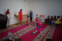 Воспитатель Мубариева Ю.Р. совместно с родителями провела развлечение в подготовительной к школе "Б" группе на тему: "Посвящение в велосипедисты". Она показала им презентацию, видеоролик, объяснила правила поведения на дороге. Детишки очень активно принимали участие в соревнованиях, катались на самакате, велосипеде, а родители им в этом помогали.
