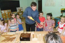 Очень хорошо сотрудничаем со школами. Дополнительные группы детского сада находятся в здании Камско-Устьинской школы, подготовительные группы с удовольствием общаются с учителями. Вчера детишки ходили в гости к Булату Ибрагимову - учителю технологии и физической культуры. Булат Маратович отвечал на вопросы детей, увлек их своим кабинетом: ребята и каталисиь на самодельных качелях, сидели в кресле, посмотрели инструменты. Воспитатель Юлдуз Мубариева в группе подвела итог увиденного и услышанного. Дети остались довольны! Они уже знают, что в школе у них тоже будет преподаваться этот предмет!