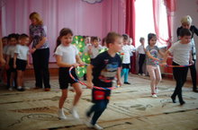 Воспитатель по физкультуре Екатерина Александровна Сычёва в хорошую погоду проводит с детьми всех групп физкультурные соревнования на улице. Детишки закаляются!