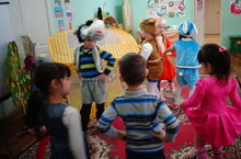 Сегодня дети старших групп под руководитством воспитателя по обучению второму (татарскому) языку показали детям младших и средних групп сказку "Теремок" на татарском языке. Представление было веселым, интересным, и зрители и выступающие остались очень довольны.