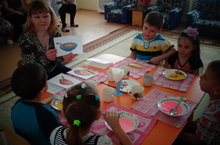 Оксана Петровна Киселёва, воспитатель средней "Б" группы знакомит детей с новыми татарскими словами.