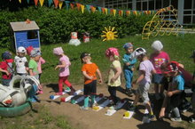 Дети группы "Малыш" с воспитателем Ахатовой Э.Р. учили лисичку правилам дорожного движения. Обучая лисичку, они на отлично продемонстрировали свои знания: как вести себя на автобусе, где перейти улицу, что означает цвета светофора, где можно кататься на велосипеде и т.д. Молодцы, ребята!