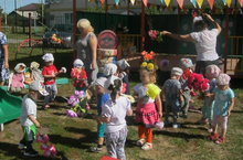Детям пришла девочка Маша (мл.воспитатель Хафизова А.И.) и пригласила в гости на свое день рожденье. Дети сели на паровоз и поехали к ней. Вместе весело провели время: пели песни, водили хоровод, плясали, играли. Под конец дети собирали цветы и подарили букет Маше.