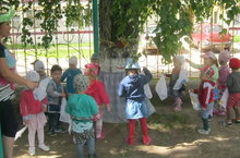 Сегодня для детей группы "Малыш" (воспитатель Ахатова Э.Р., музыкальный руководитель Зарипова Ф.Х., мл.воспитатель Айсина Р.Х.) провели праздник березки. Дети вели хоровод вокруг березки, плясали, играли. В конце угощались сладкими кукурузными палочками.