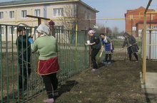Многие работники детского сада вышли сегодня на средник. Погода была просто прекрасная, настроение отличное. Все вместе привели в порядок прилегающую территорию и территорию учреждения.