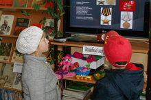 Воспитанники подготовительной группы посетили поселковую библиотеку. Они познакомились с наградами Великой Отечественной войны. Послушали о героях нашего поселка.