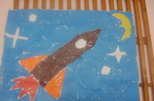 В старшей группе выставка ко Дню Космонавтики продолжается. Аппликация ракеты.