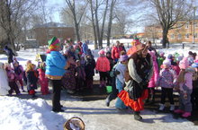 В детском саду прошла масленица. Пели, плясали и играли. Сожгли чучело и угостились блинами. Азарт и веселье были на протяжении всего праздника.