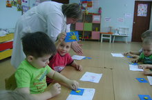 НОД в 1-вой младшей группе. Дети весело лепили лучики для солнца.