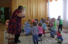 Вторая младшая группа (воспитатель Симанова А.П.) в режимный момент проводит игру на развитие воображения "мы мороженое, а оно начинает таять".