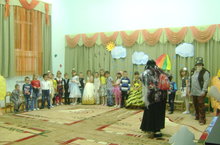 ребята старшей группы побывали в сказке, на огороде. познакомились с Пугалом. Порадовали всех стихами и танцами.
