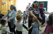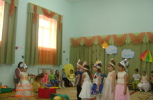 16.00 ч. встретил музыкальный зал родителей и детей подготовительной группы. пришли осень. слякоть, лесовик. В роли, которых выступали родители.