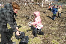 Сегодня дети старшей группы провели уборку весеннего мусора на территории яблонего сада и на своей прогулочной площадке.