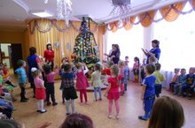 В гости к ребятам подготовительной группы пришел старик Хотабыч и дед Мороз. Много волшебного увидели дети на празднике. Но и ребята не оставились в долгу: показали новогоднюю сказку, станцевали красивые танцы, спели веселые песни и рассказали стихи. Показали как они знают два государственных языка - русский и татарский.