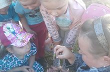 Старшая группа на прогулке сегодня наблюдала за кузнечиком