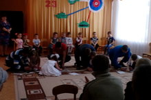 Прошел под девизом "Смелые, отважные и ловкие..." в старшей Б группе. Дети и родители -папы радовали друг друга победами в конкурсах и эстафетах!
