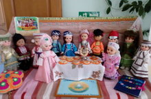 Наш детский сад представил свои работы по теме" Костюмы народов Поволжья" на выставке августовской конференции.