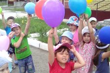 Сегодня средние группы и старшая отправились в путешествие на воздушных шариках!