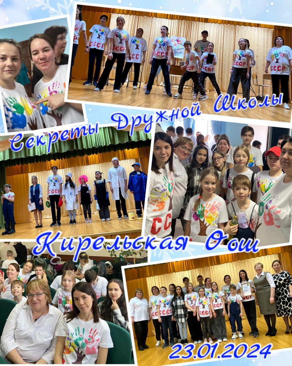23 января 2024 года прошел конкурс "Секреты дружного класса", в котором приняла участие наша Кирельская школа, название команды-"Союз Современных Ребят, Руководителей классных, Родителей" (СССР), - нашло свое отражение в жизни, все проявили творчество, активность, оказались очень сплоченной командой и выступили отлично! Родители: Ильичева Елена Николаевна, Агафонова Альбина Альфредовна, Абрамова Ольга Николаевна, Мухамадуллина Елена Геннадьевна приняли активное участие в конкурсе, за что им огромное спасибо! Несмотря на свою занятость, многие родители прислали для проекта "Профессии" видеоклипы, за что всем огромное спасибо! Мы действительно дружная сплоченная команда-ребята, родители, учителя! Вместе мы сможем все! Все - большие Молодцы!