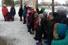 Учащиеся Кирельской школы очищают от снега памятник .