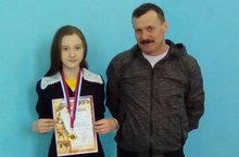 Поздравляем нашу ученицу Сабирову А. и учителя физической культуры Курбанова В.Х. с победой!