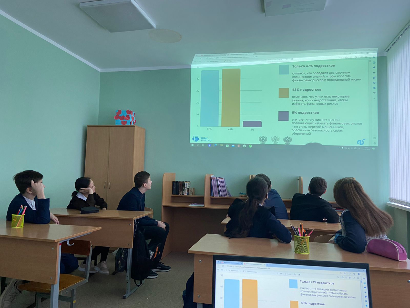 Всероссийский тематический урок "Финансовая безопасность" прошел в 8 классе. Каждый человек может столкнуться с мошенничеством при потреблении финансовых услуг ,учащиеся 8 класса узнали как избежать подобных инцидентов, применяя правила и меры предосторожности в этой области.