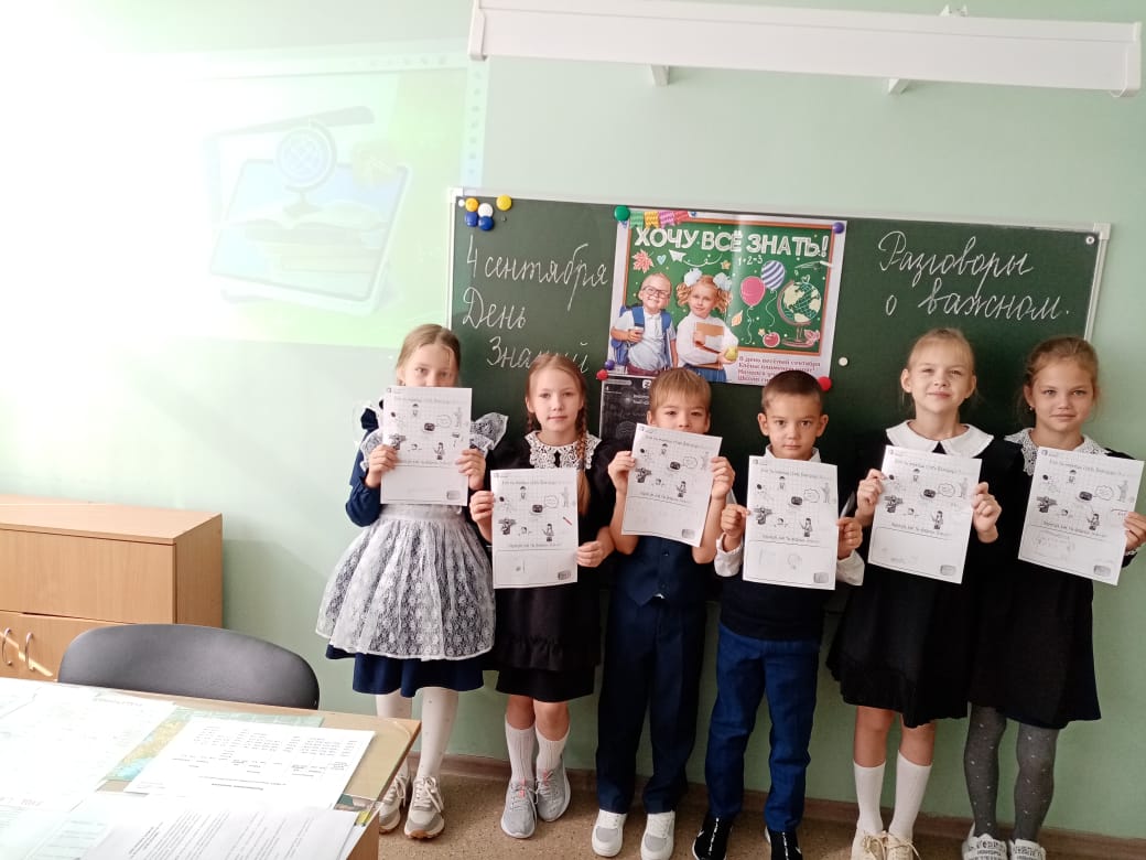 4 сентября в школе прошел классный час - Разговоры о важном по теме "День знаний", где ребята просмотрели видеофрагменты встречи ВВПутина со школьниками на Всероссийском уроке "Разговоры о важном" : герой Познайкин познакомил ребят с достижениями Петра 1 и провел викторину, просмотрели фрагмент мультфильма "Сойдет и так", заполнили рабочие листы : Кем ты можешь стать благодаря знаниям, Чему вы хотели бы научиться в школе, чтобы принести пользу своей малой Родине, с помощью беседы ответили на главный вопрос, зачем нам нужны знания.