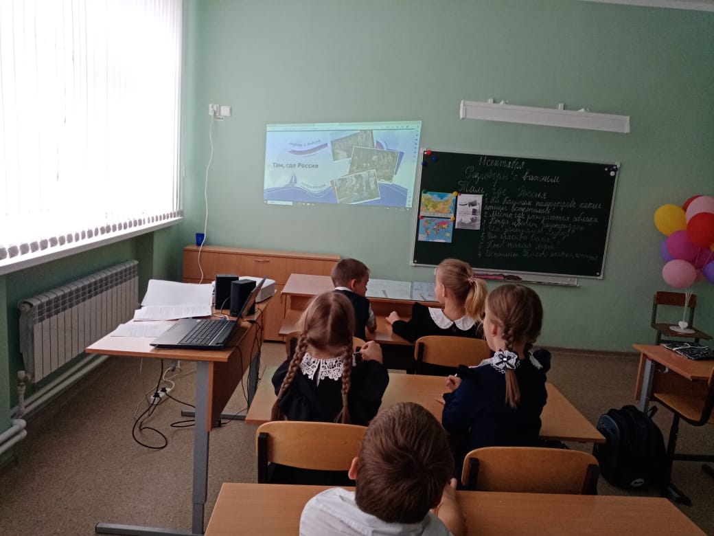 11 сентября ,с 1 и 3 классом проведен Разговор о важном на тему : "Там ,где Россия" . У учащихся развивали интерес к природным и географическим объектам России, формировали представление о ценностях к родному краю . Просмотрели фрагмент видеоролика " Россия", решили фенологическую загадку, путешествовали на паровозике из Ромашково.