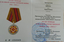 Награждение Юбилейными медалями "70 лет Победы в Великой Отечественной войне 1941- 1945 гг" 20.03.2015