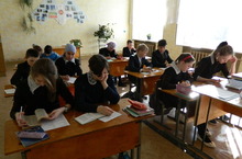 В школе в день проведения Тотального диктанта учащиеся, учителя и работники школы писали диктант - "Таймырское озеро" по Ивану Соколову - Микитову.