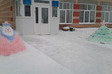 Вот такой Дед Мороз и ёлочка встречают детей у входа в детский сад 27.12.2016