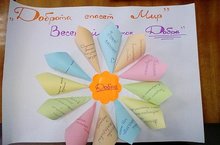Ученики написали на листочках полезные советы о добре и сформировали из них лепестки для Весеннего цветка добра.