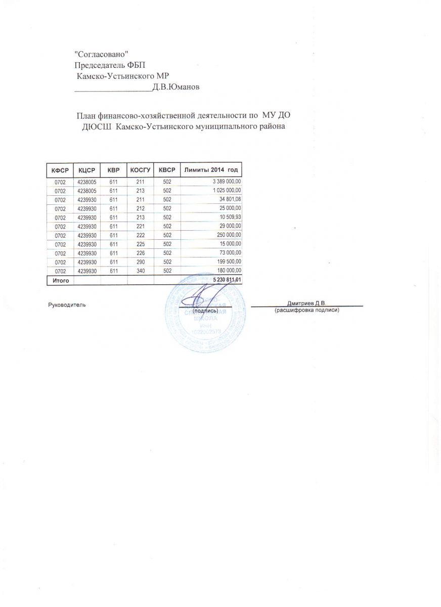 План финансово хозяйственной деятельности за 2014 год