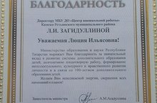 В рамках торжественной части состоялось чествование ветеранов и лучших работников системы дополнительного образования детей Республики Татарстан, где директор МБУДО «ЦВР» Загидуллина Л.И. была отмечена Благодарностью Министерства образования и науки Республики Татарстан «За значительный вклад в развитие системы дополнительного образования детей и долголетнюю плодотворную работу». -