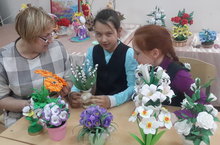 Учащиеся объединений дополнительного образования Центра внешкольной работы "Прикладное-творчество" (педагог Сороковнина Галина Алексеевна) подготовили для мам поделки -цветы из фомирана. Из поделок была оформлена выставка ко Дню матери.