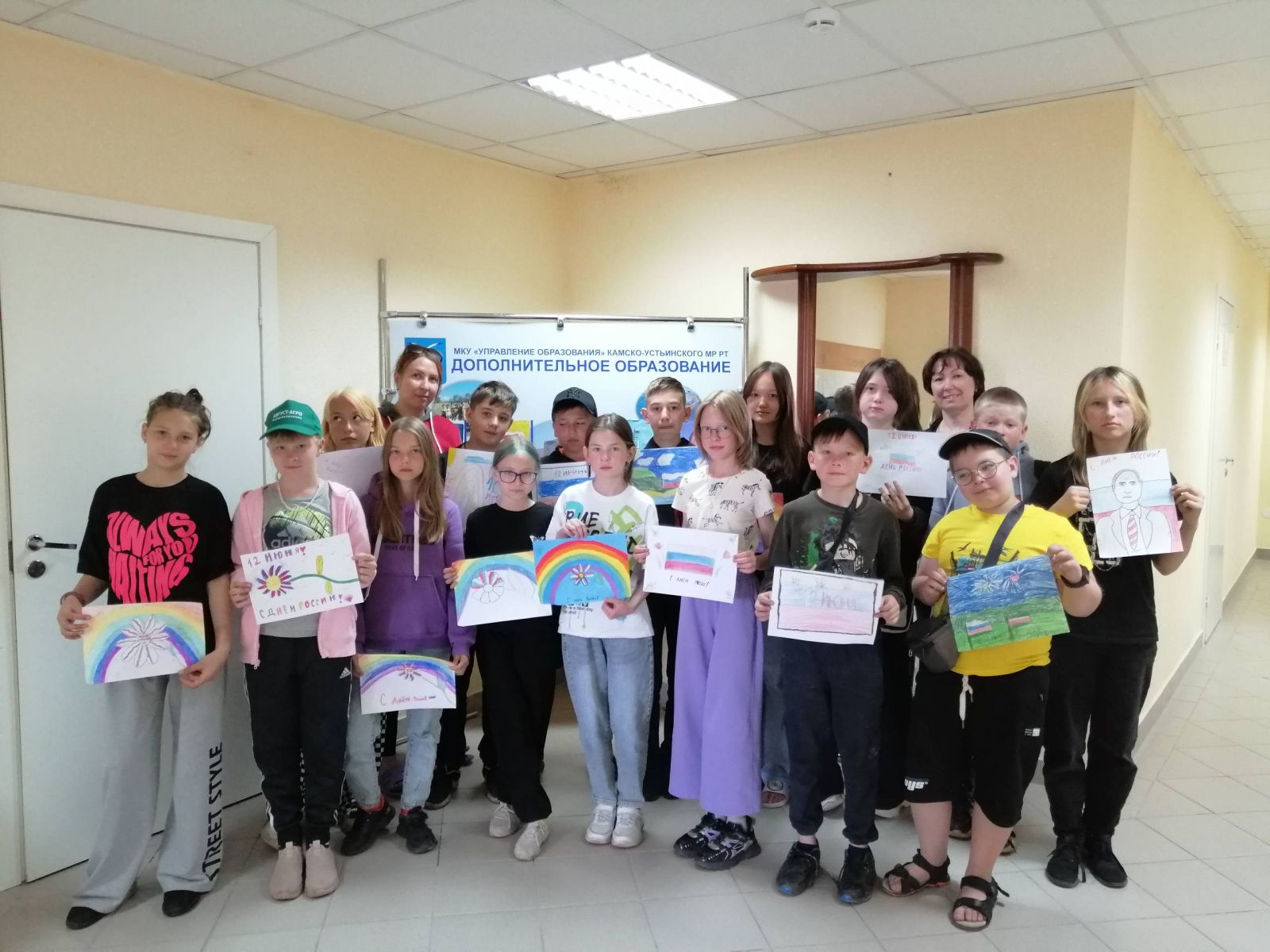 В преддверии Дня России, учащиеся Камскоустьинской школы, посещающие лагерь труда и отдыха, приняли участие в мероприятии, организованном в Центре внешкольной работы. Педагог дополнительного образования Мингазеева Г. Р. провела беседу о государственном празднике, после чего ребята нарисовали рисунки по теме "12 июня - День России". Каждый рисунок получился красивым.